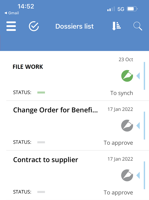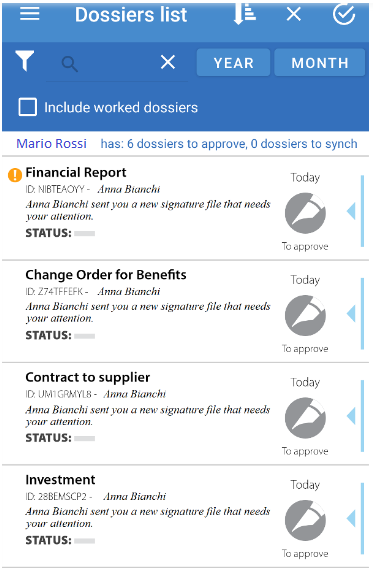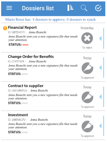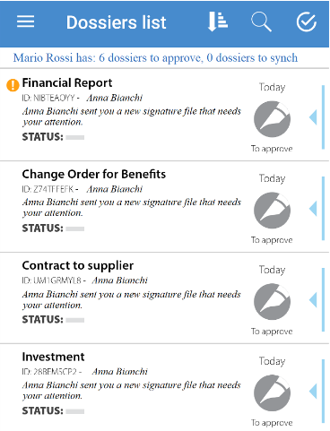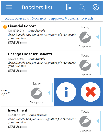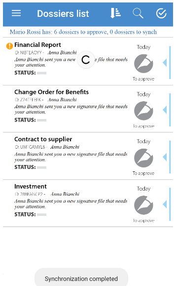 Synchronization without signature (for approvals and visas) takes place when you open the application (if the automatic update option has been set at startup) and /or with a vertical swipe on the list of practices.