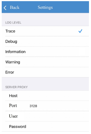 Log Level – sets the level of information that the application records during operation (by default trace). The change of the parameter is required to analyze anomalies detected in the use of the APP.