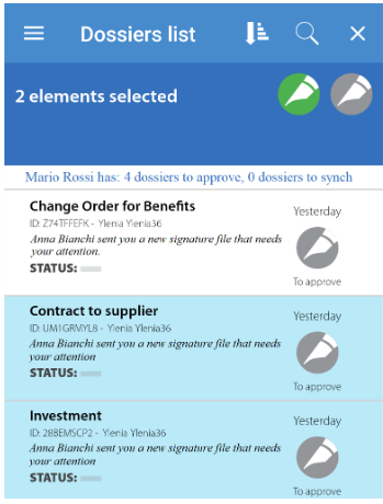 The "Confirm All" function allows a signatory to bring all the actions of one or more packages/documents to the status from "To be synchronized" with a simple check on the list.