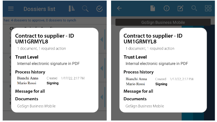This different mechanism is necessary to highlight to the signatory that the operation he is about to perform is not a simple synchronization / approval but the signature of the document.