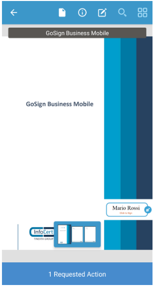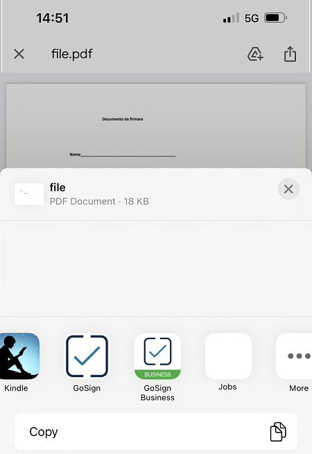 You can choose a file to sign from your device and open it with Go Sign Business Mobile by directly activating the sign and send function.