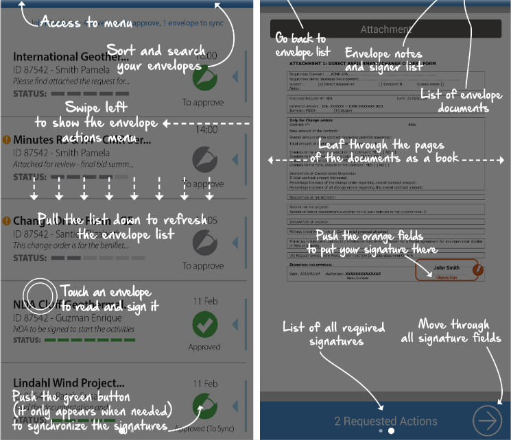 Through the application, you can consult your signed documents and apply the required actions on them.
