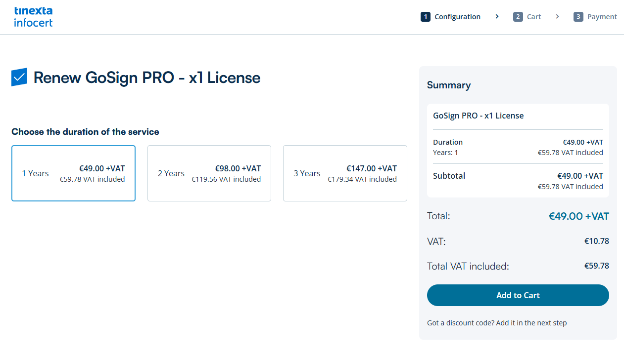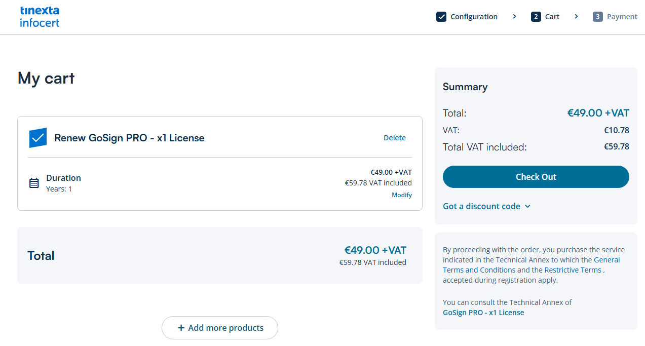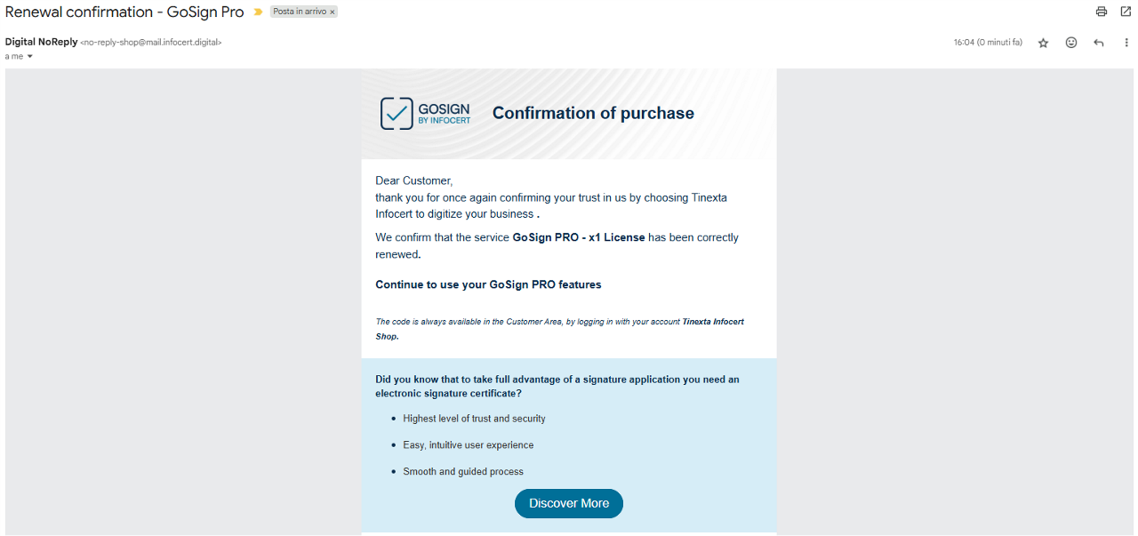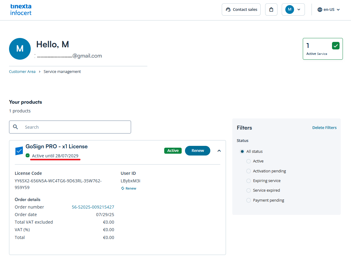 In your reserved area, you will find the new expiration date for the product you just purchased (GoSign PRO license renewal).