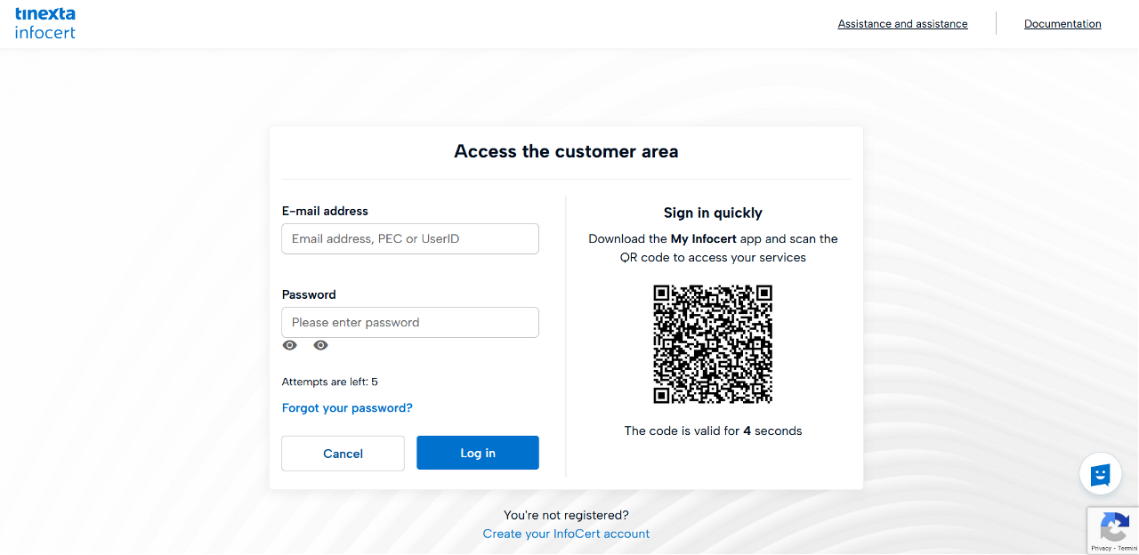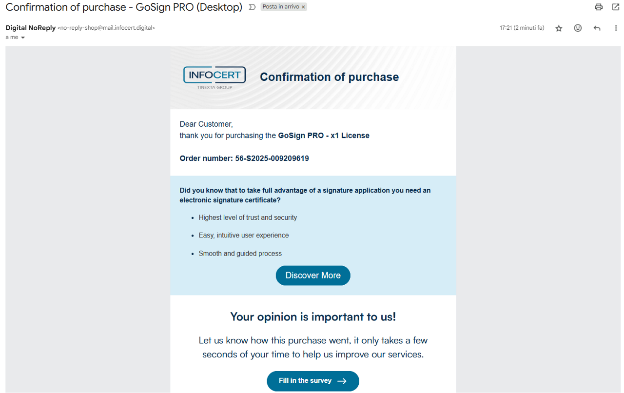 To complete your purchase, sign in using your InfoCert Store credentials.