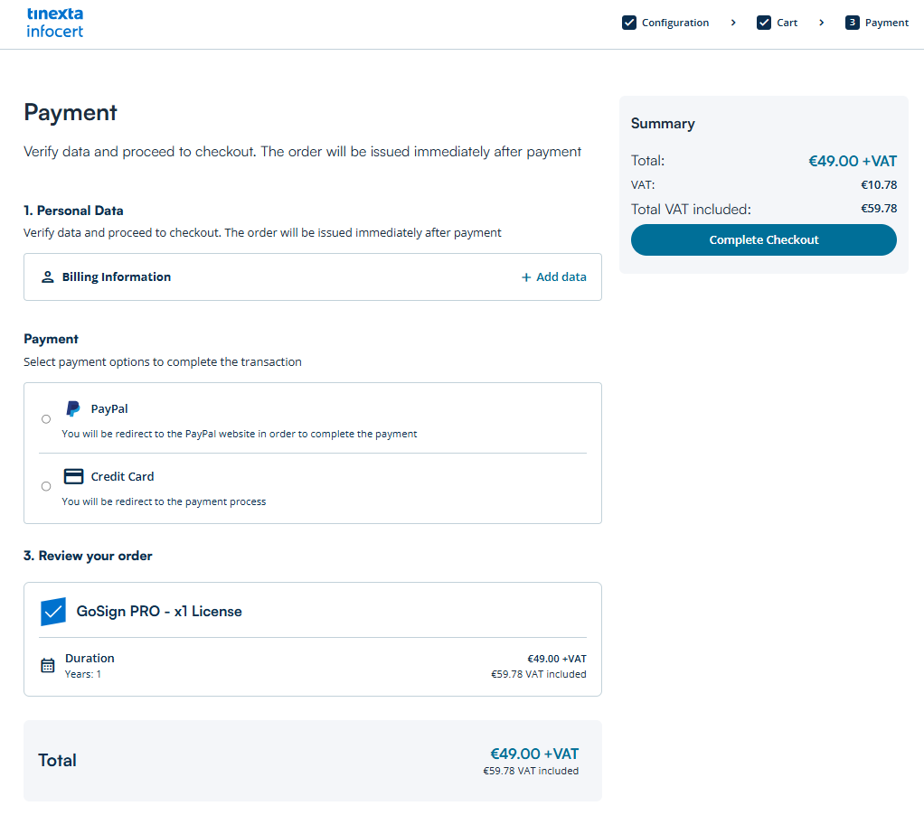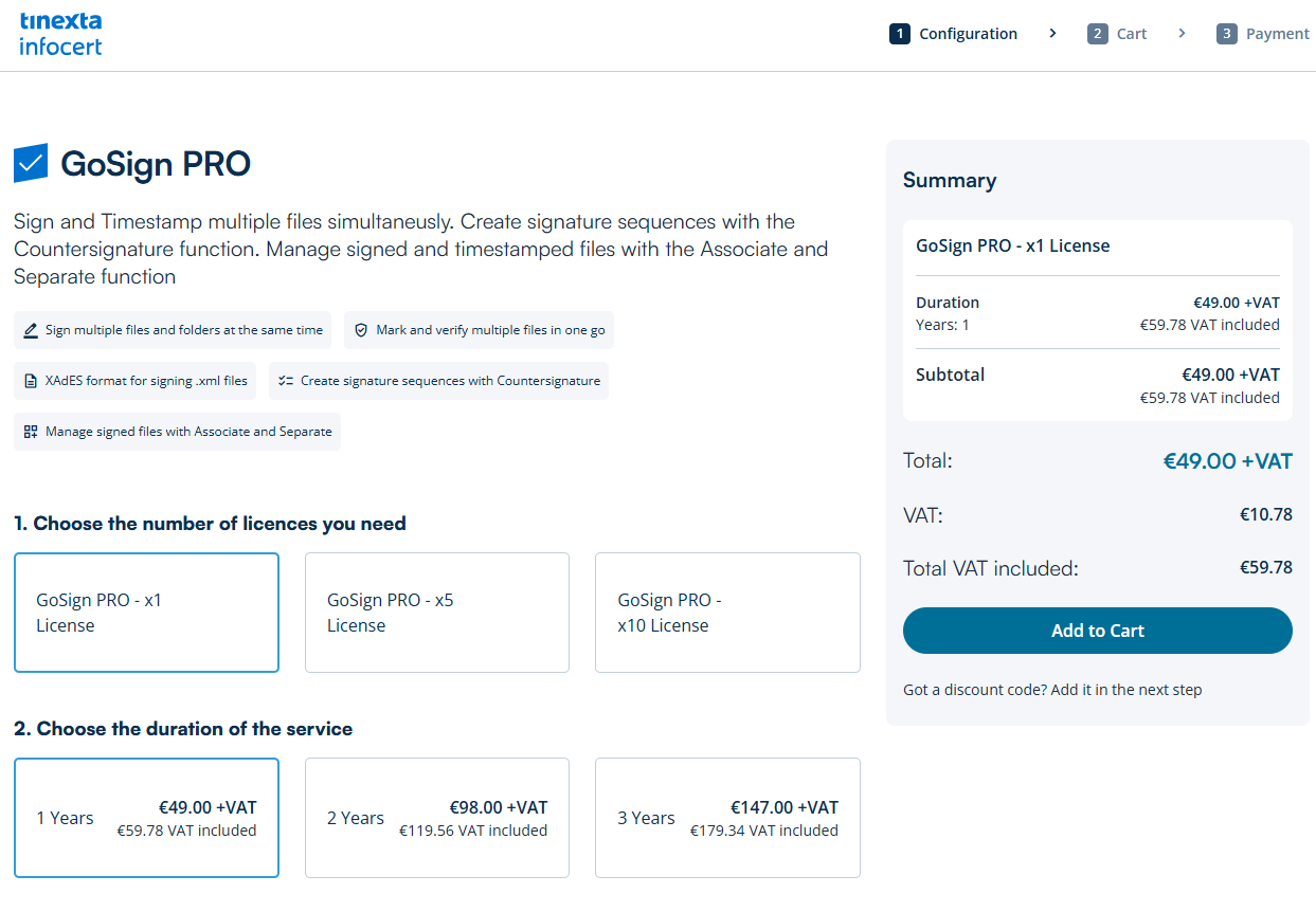 Click on Add to Cart to purchase the license on the InfoCert Store.