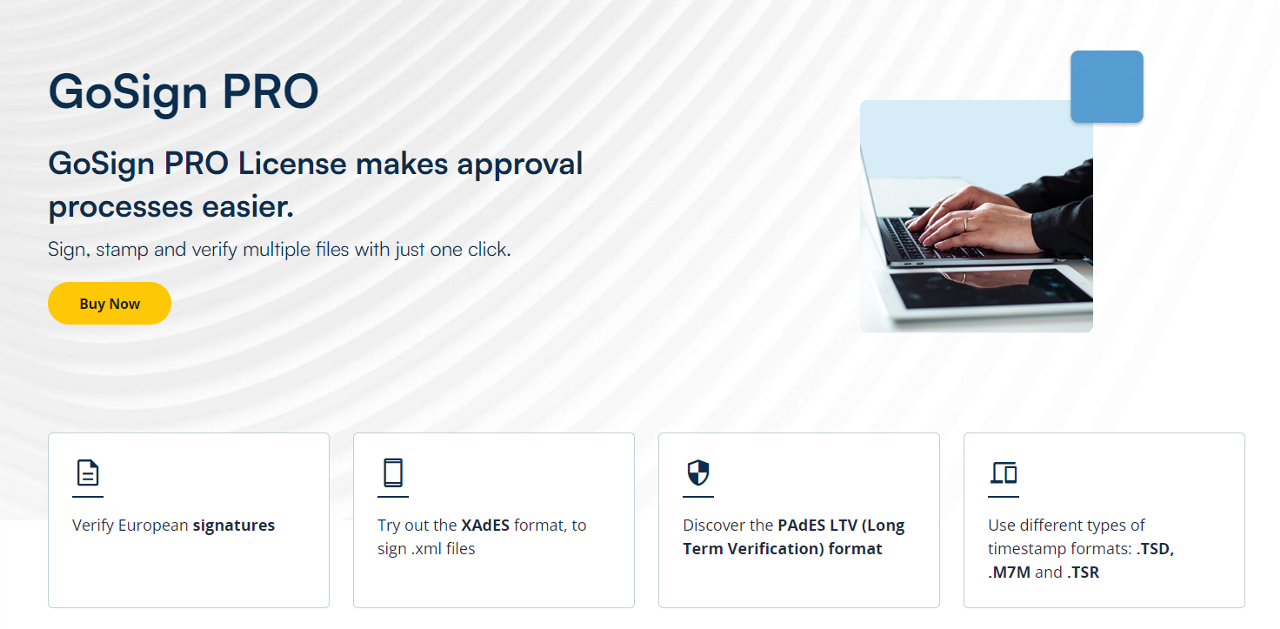 The InfoCert site dedicated to digital signatures provides all the information you need on GoSign Desktop PRO extended features.