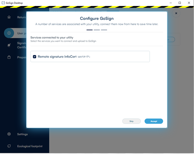 After logging in to your browser, select the remote signature account to configure in GoSign Desktop (it is already pre-selected in any case).