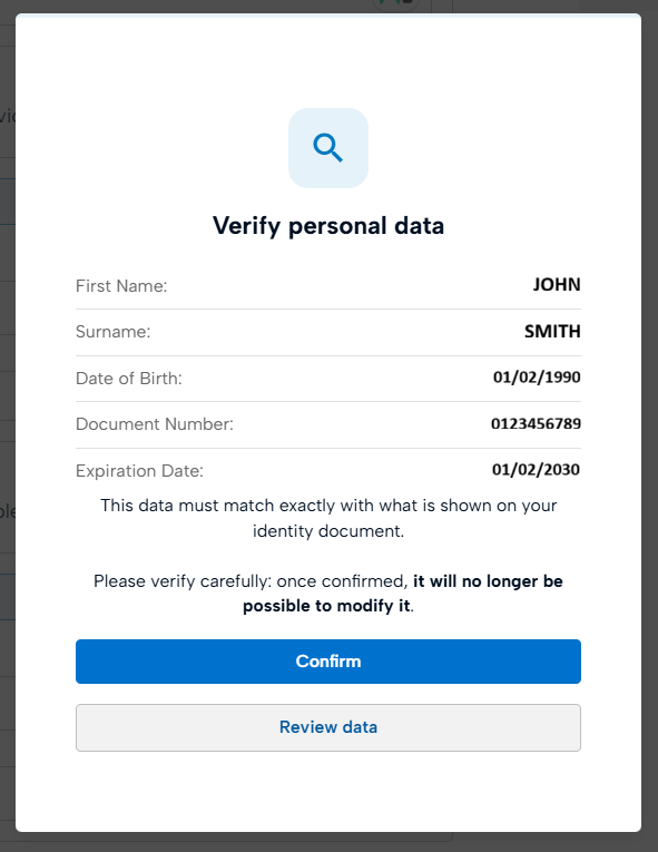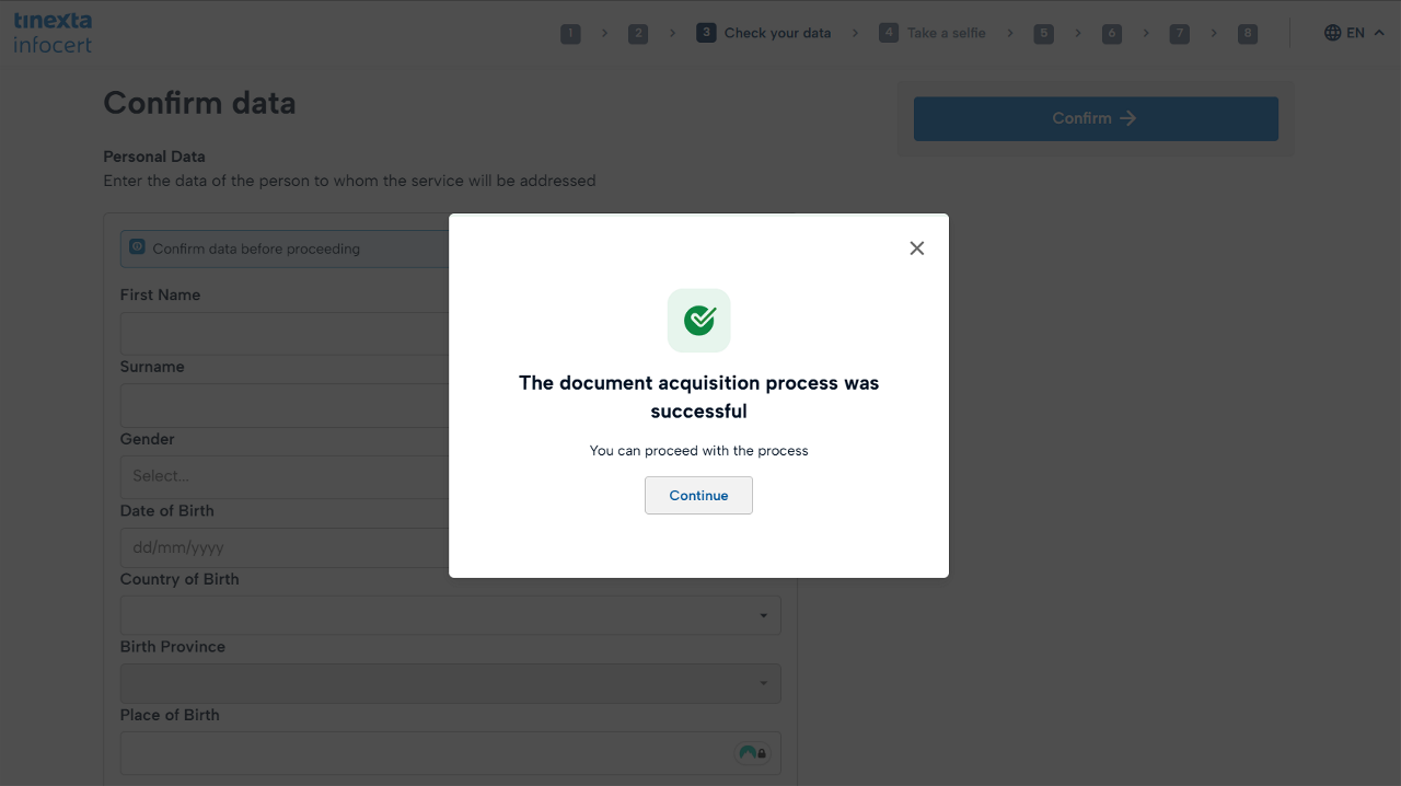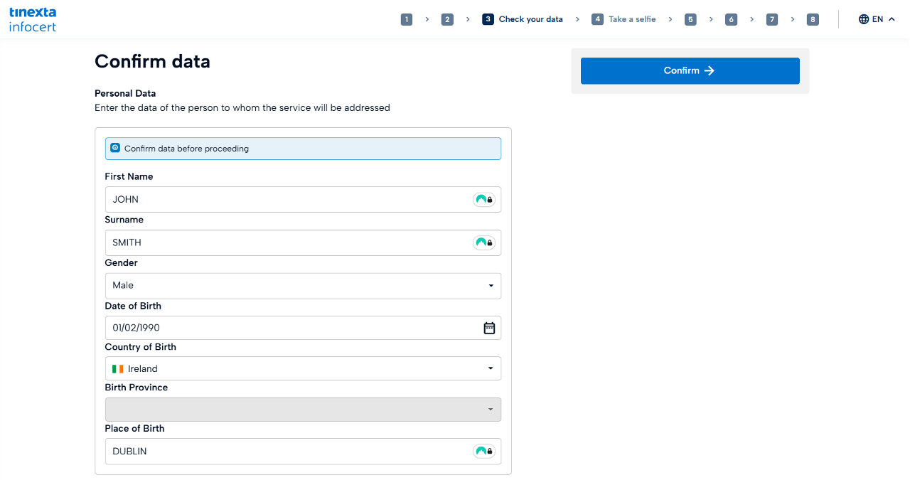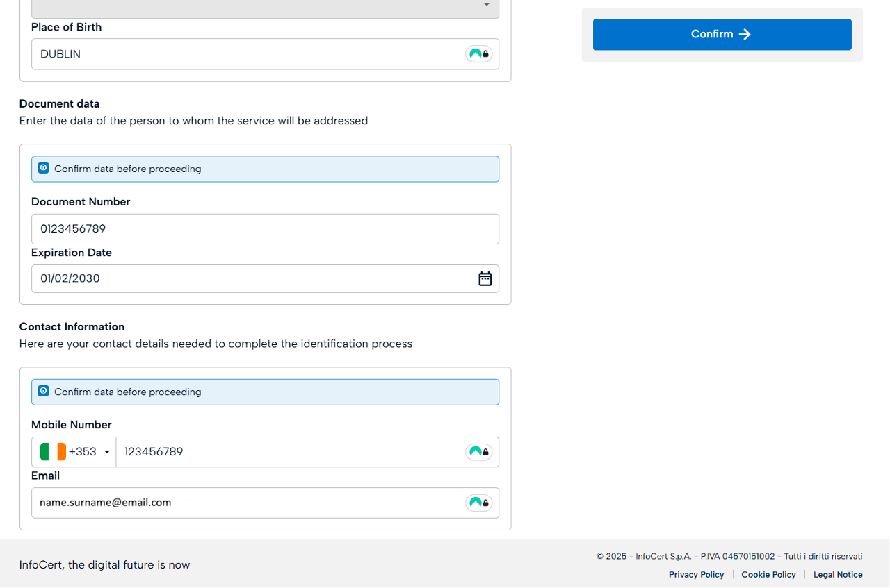 Verify personal data and click on Confirm.