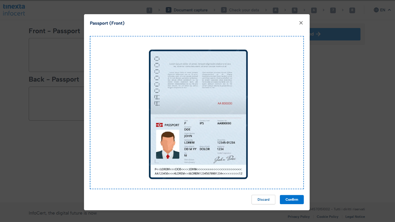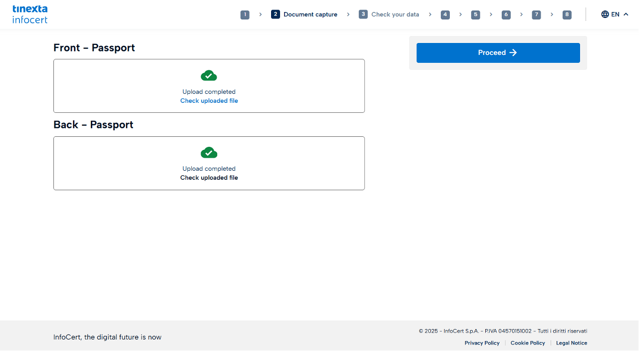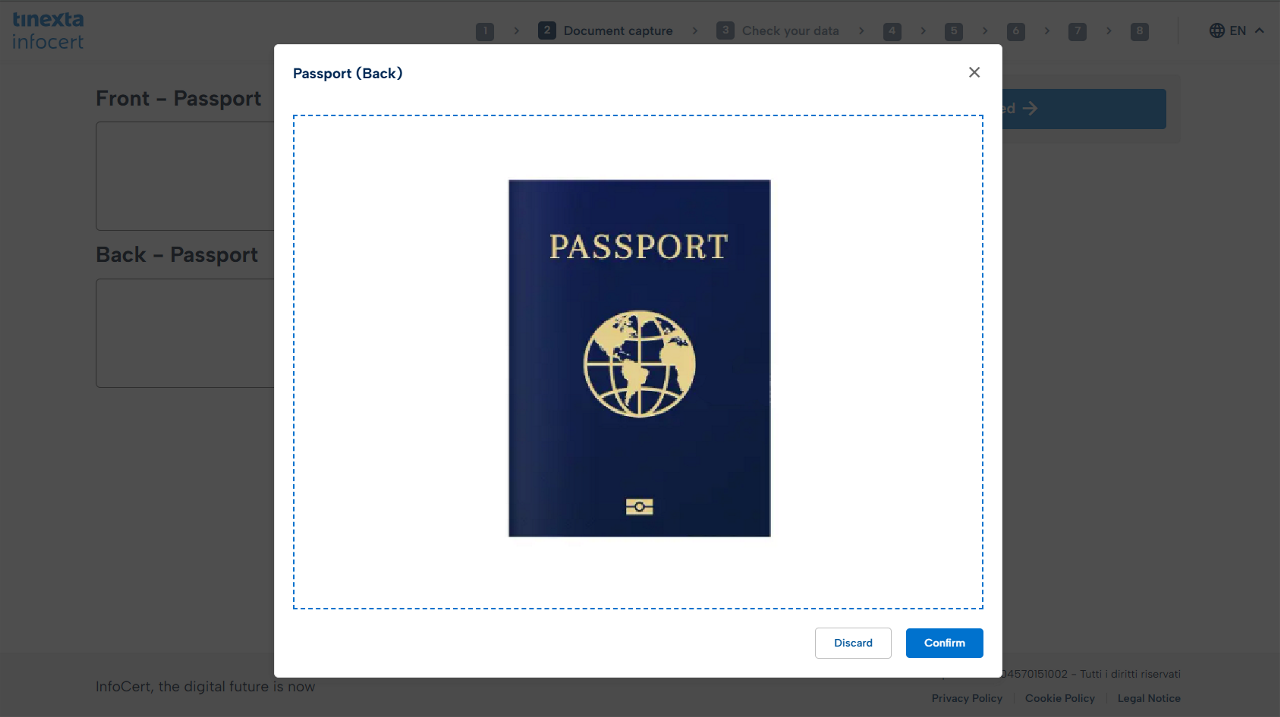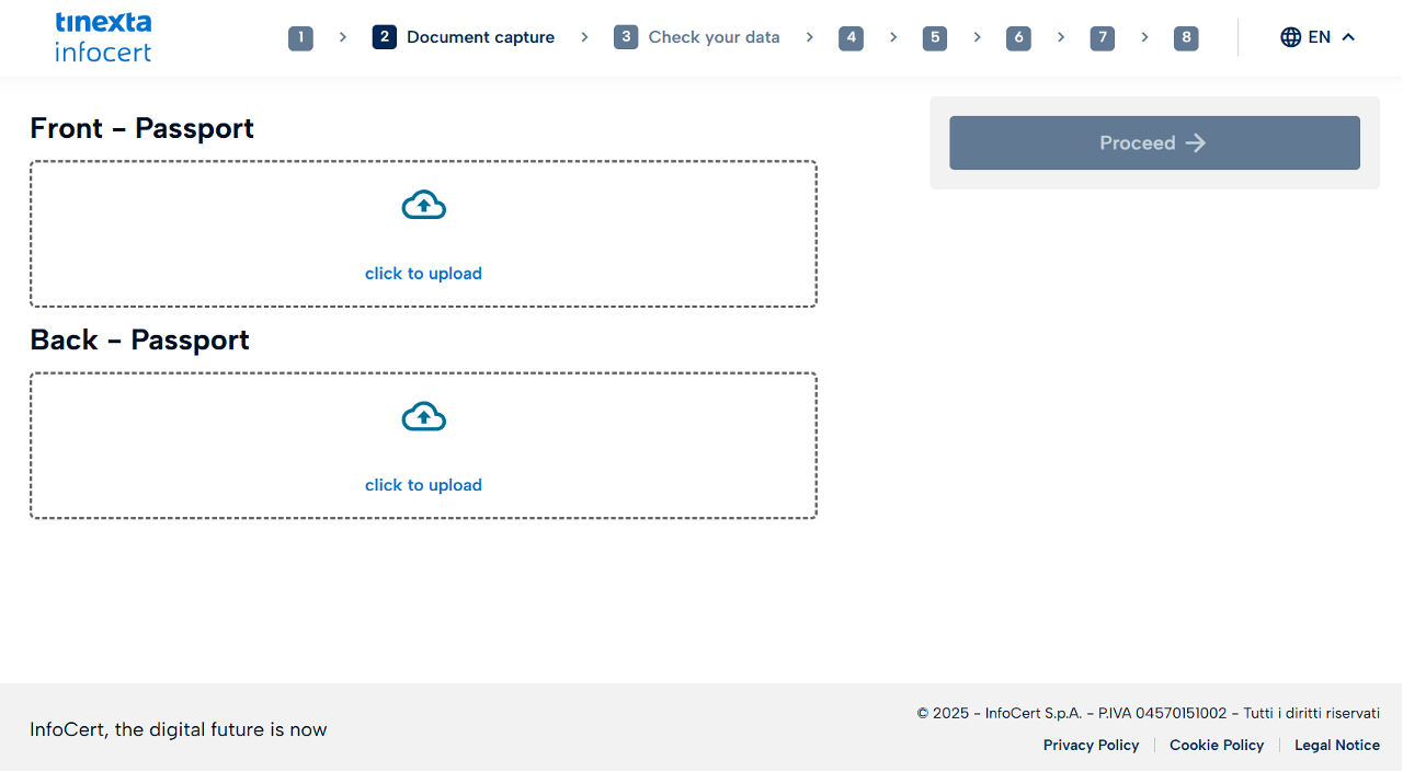 Upload both sides (Front and Back) of the identity document entered in the previous step (e.g. Passport).