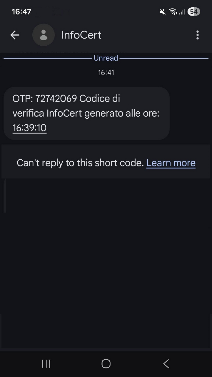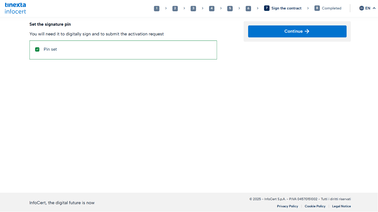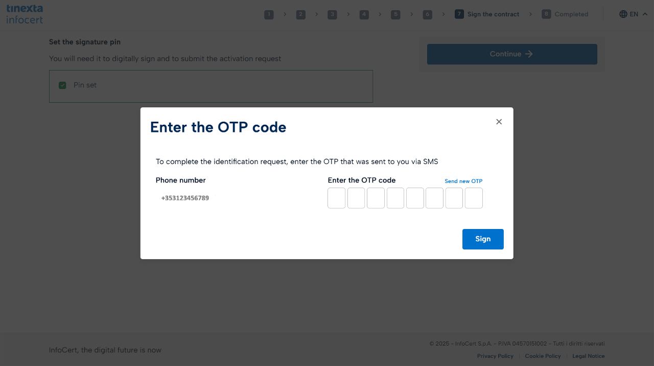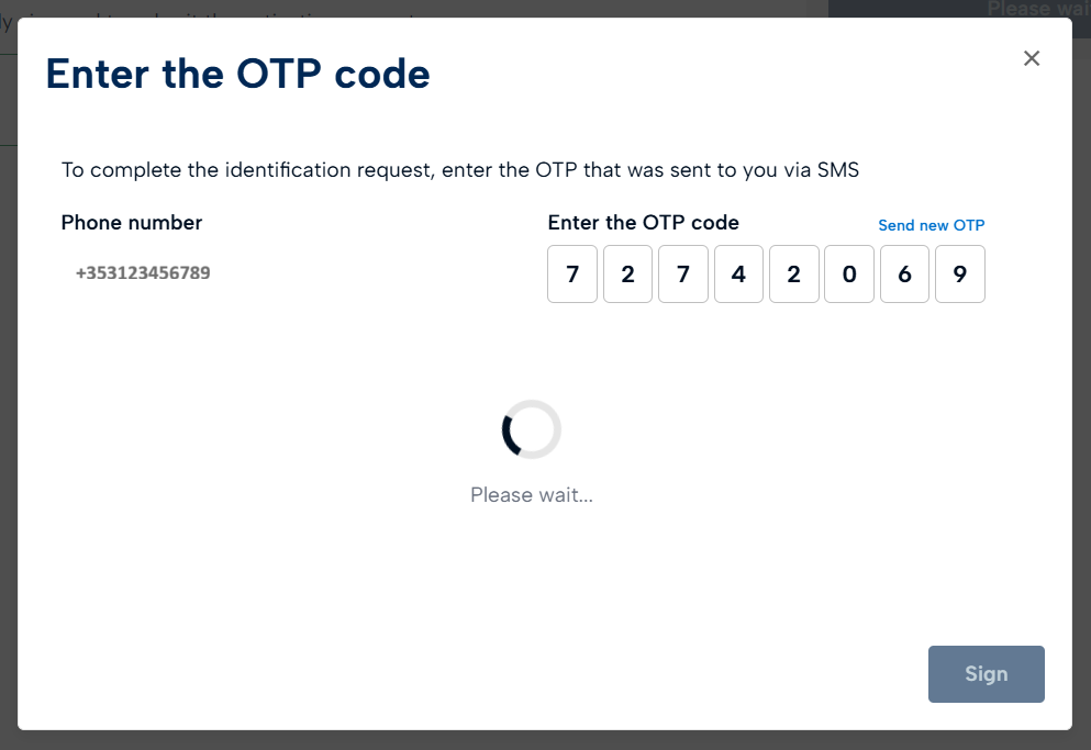Once you have entered the OTP, click Sign and wait for the procedure to complete.