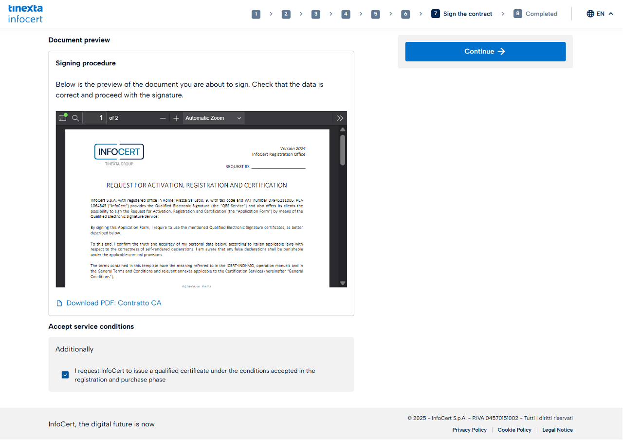 Read the contract you are about to sign digitally and check the service conditions at the bottom.