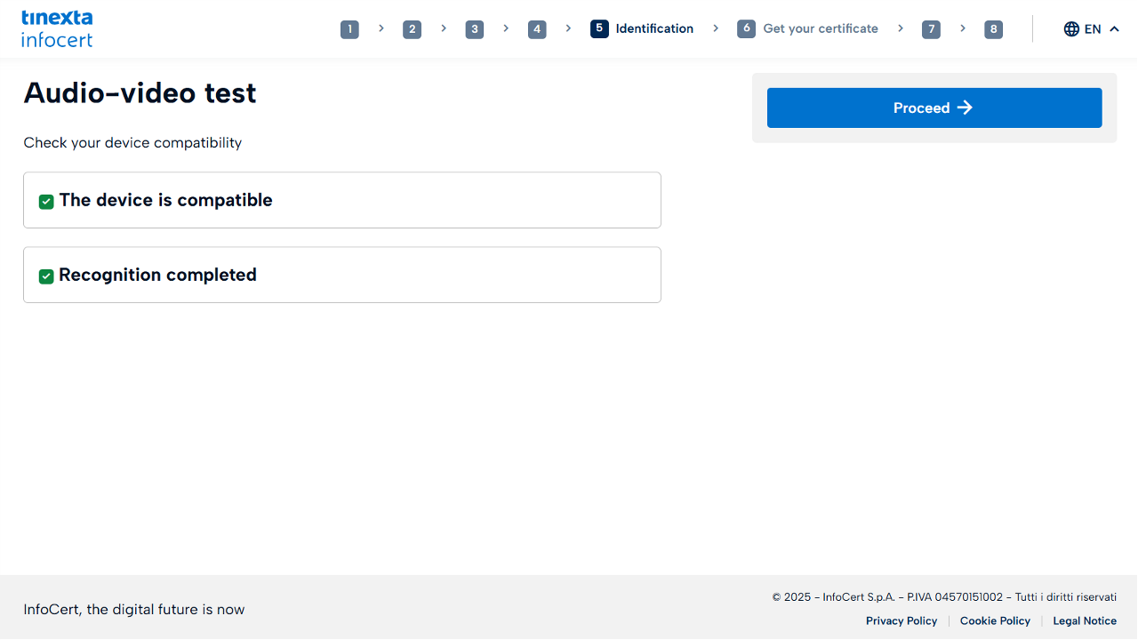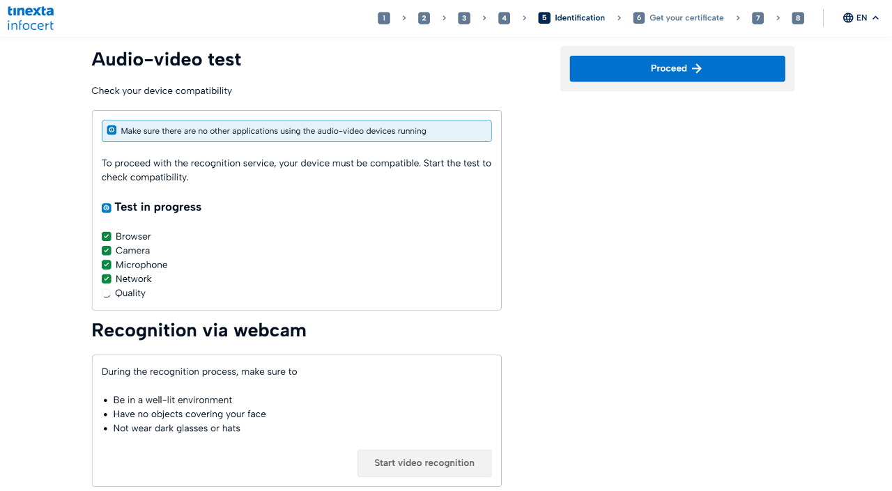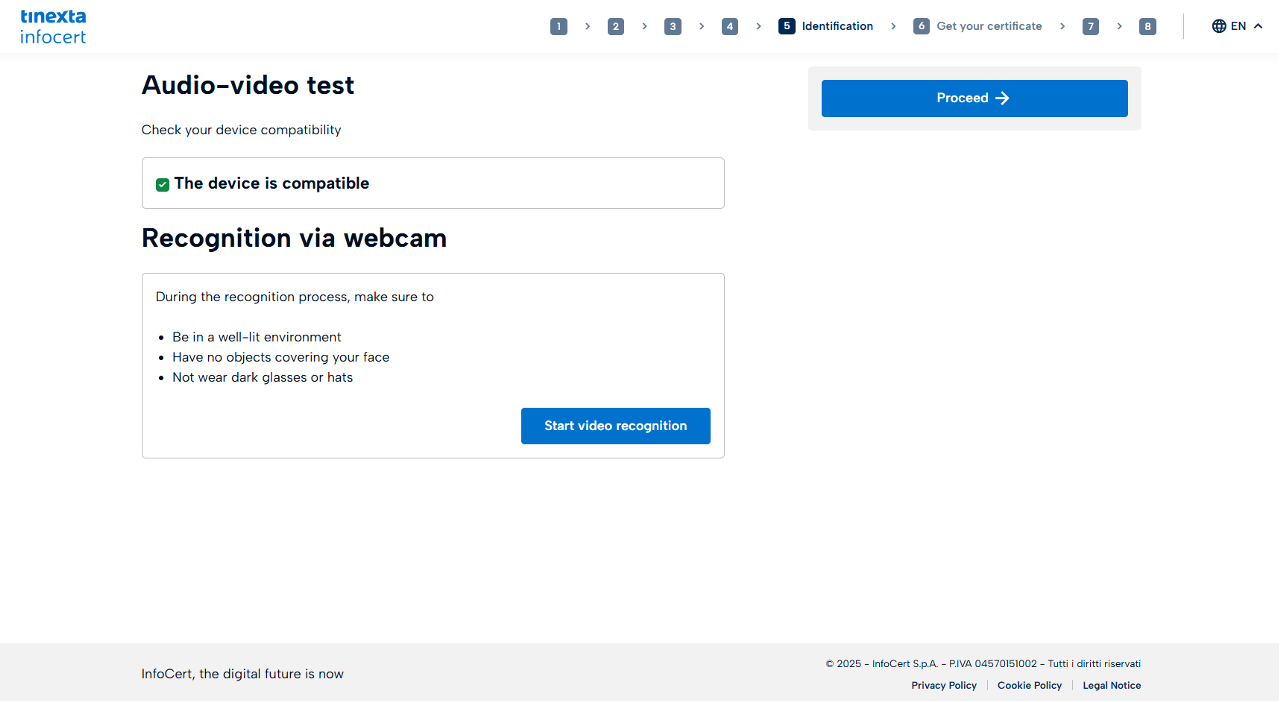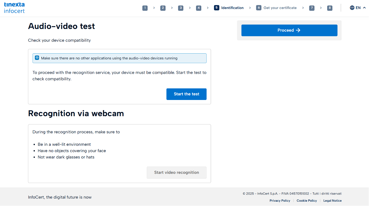 Take the Audio Video test to prepare for identification with a Tinexta Infocert agent.