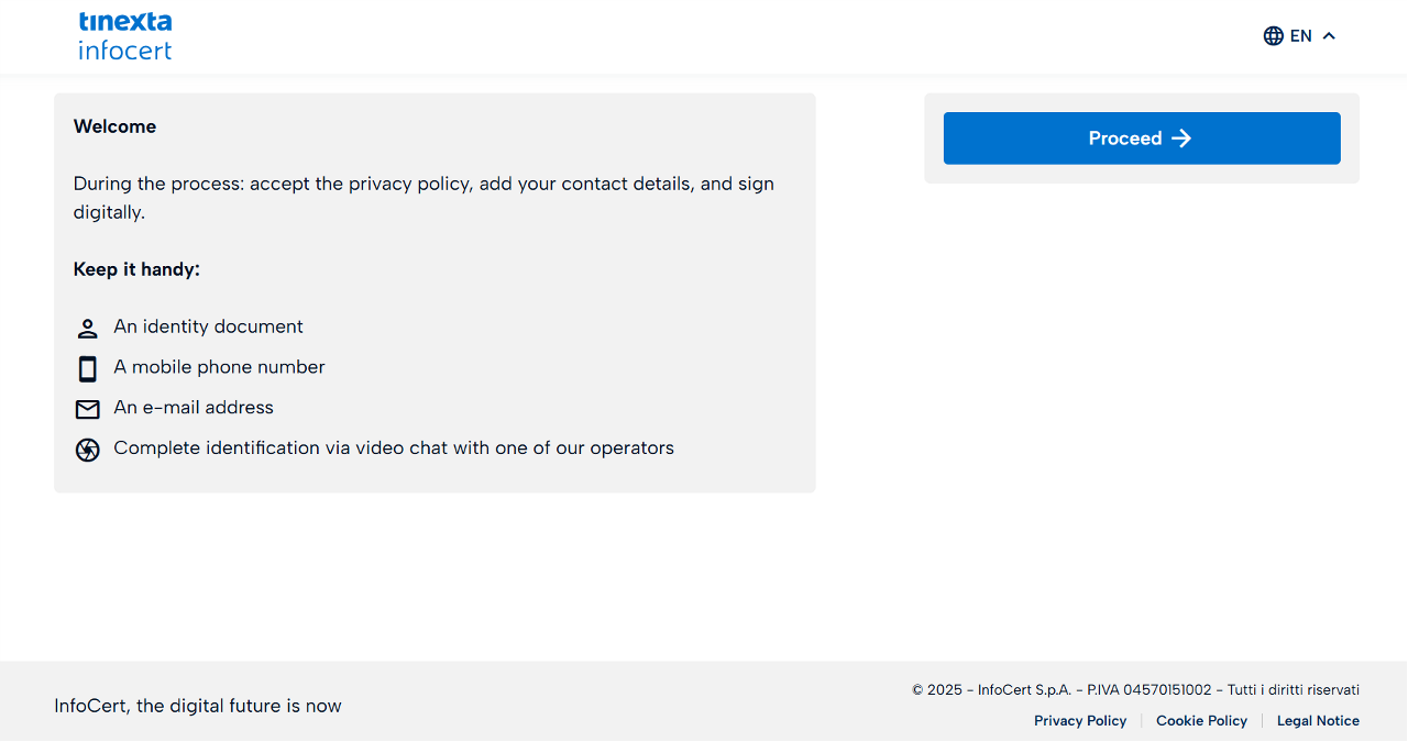 During the live web session, you are required to follow the indications given to you by the Tinexta Infocert Operator: