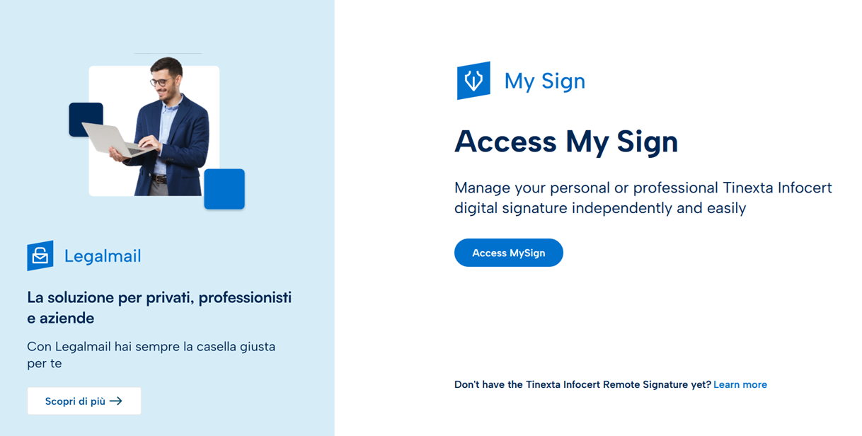 You can access the Tinexta Infocert signature portal called My Sign at any time to manage your QES signature certificate.