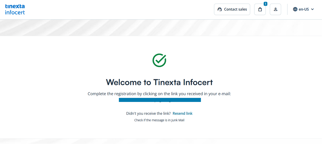 At this point, you will receive an on-screen message inviting you to check the email address you entered to complete the registration of your Tinexta Infocert account.