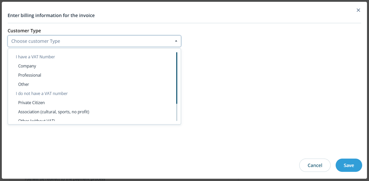 After saving the data, choose the payment method and confirm from Complete Checkout.