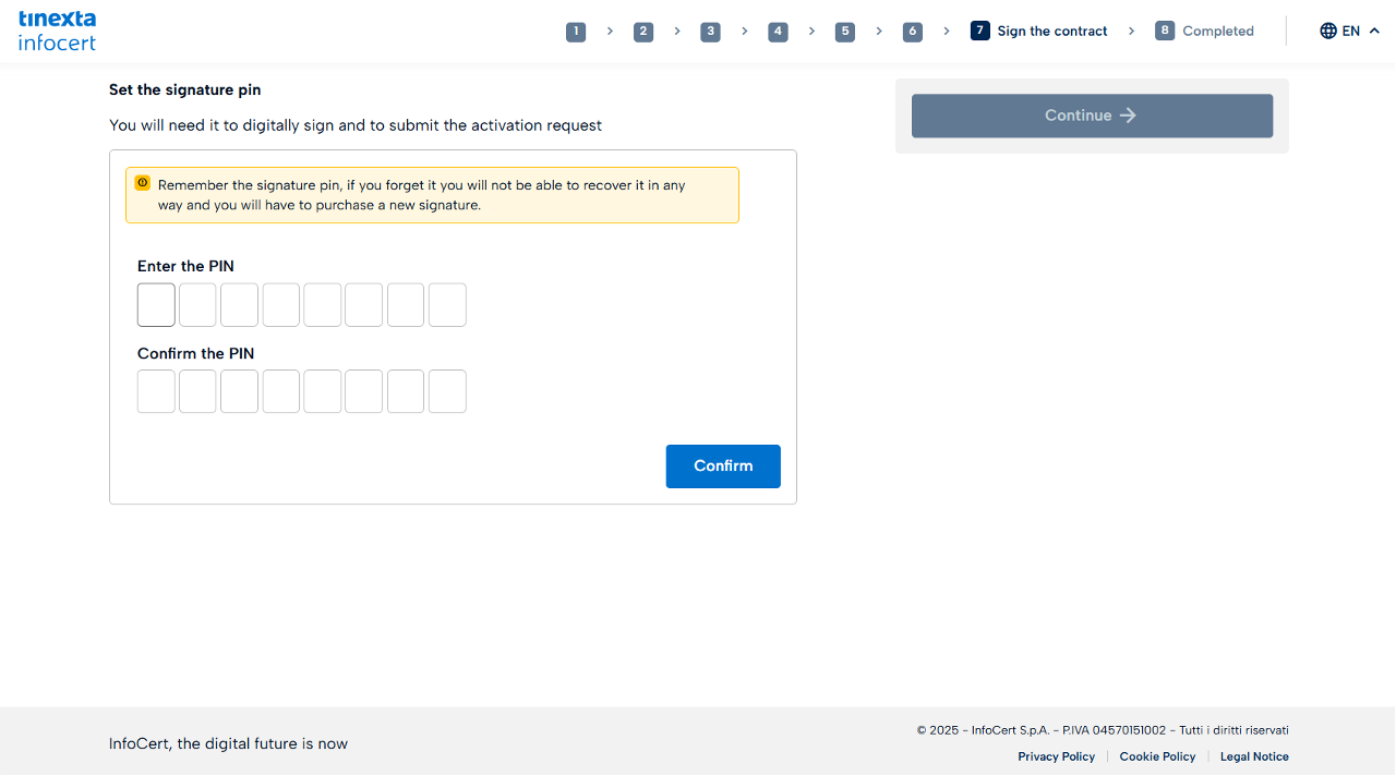 Set the signature PIN