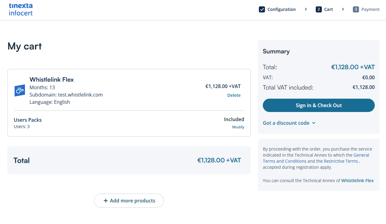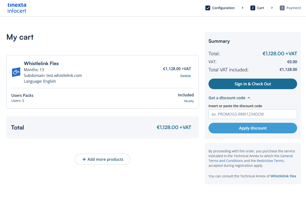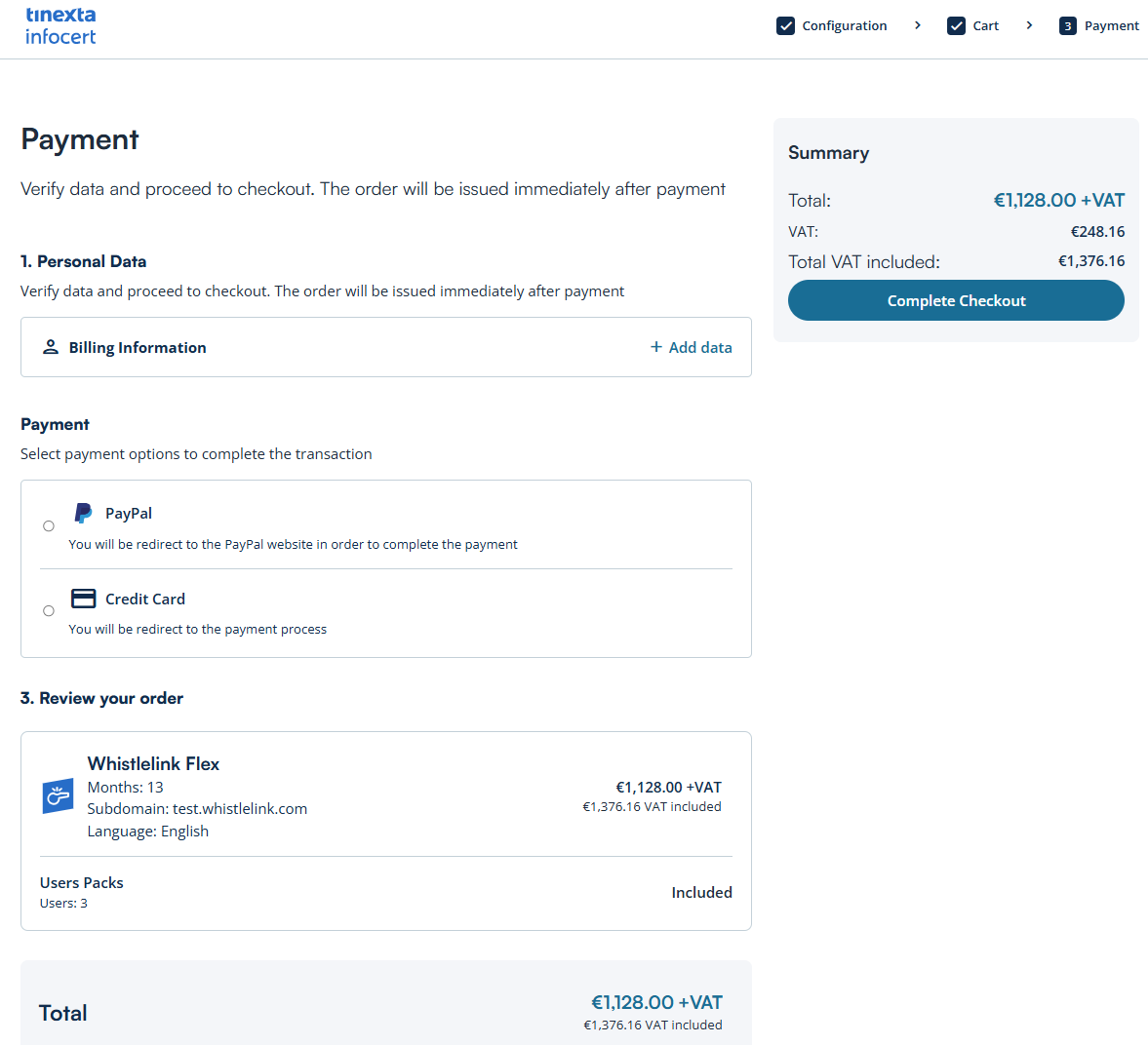 If you already have a Tinexta Infocert account, sign in to get to the "Payment" section