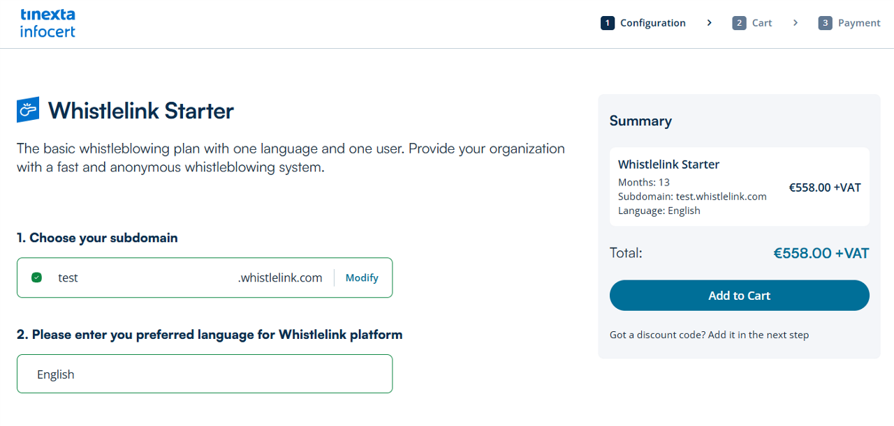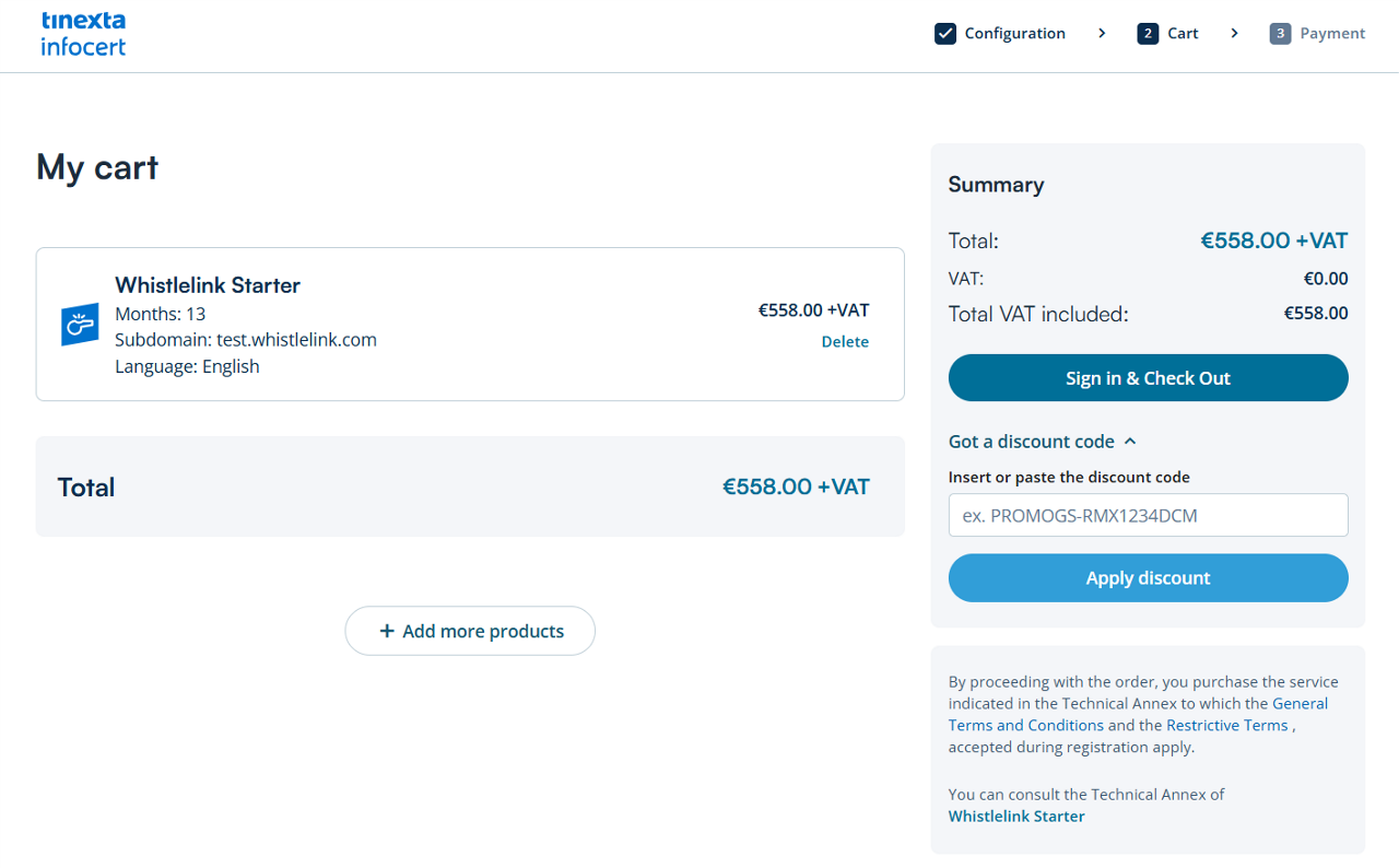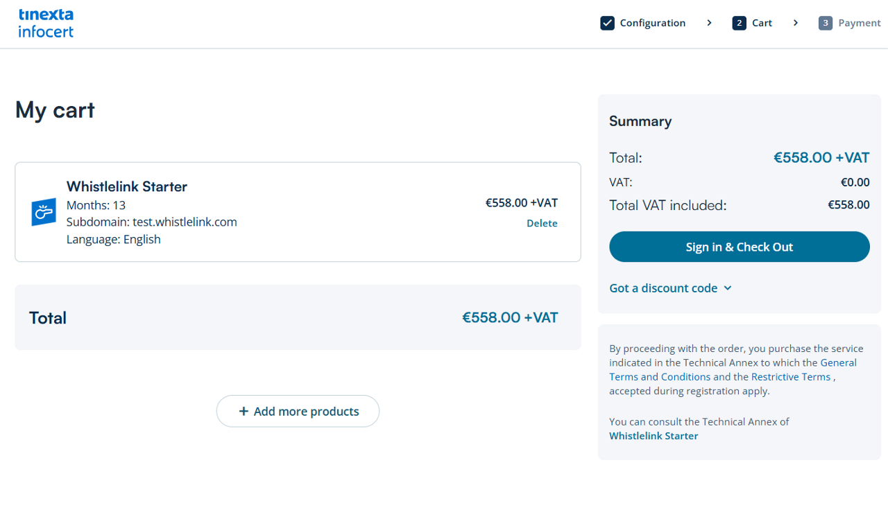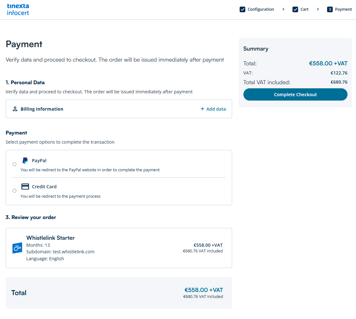 If you already have a Tinexta Infocert account, sign in to get to the "Payment" section