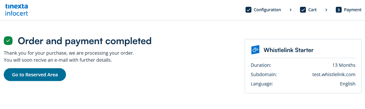 Registration on Tinexta Infocert was successful!